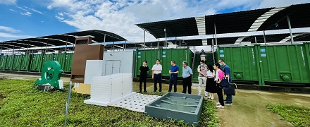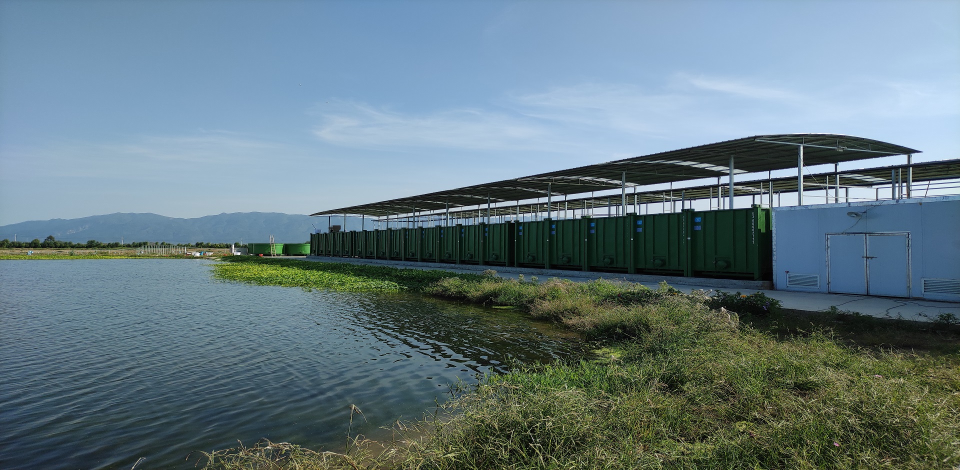 集裝箱式養(yǎng)殖系統采用 20 呎定制化“集裝箱”,尺寸是 6.1 米 *2.4 米 *2.8 米,養(yǎng)殖水體 25 立方米,占地面積為 15 平方米 ,配有納米增氧管(增氧)、出魚口(收魚)、集污槽(排污)、天窗(觀察投喂飼料)、固液分離器(尾水處理)等功能構件。
